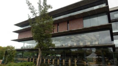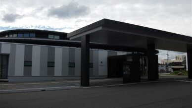 「北広島町図書館千代田分館」は、ガラス張りの外観や芝生広場が特徴的な図書館で、明るく開放的な雰囲気です。北広島町まちづくりセンター内に開館し、周囲には町役場や道の駅などの施設が集まりにぎやかです。